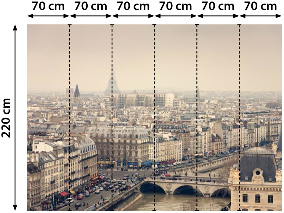 Beispiel für das Zusammenlegen einer Fototapete aus mehreren Streifen von 70 cm oder das Drucken einer Fototapete in einem Streifen von 120 cm.