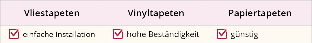 Tapeten sind eine großartige Möglichkeit, dem Interieur einen persönlichen Stil und Atmosphäre hinzuzufügen. Die Auswahl des richtigen Tapetenmaterials ist entscheidend dafür, dass sie so lange wie möglich perfekt aussehen. Es gibt drei Arten von Tapeten, die sich in ihren Eigenschaften und ihrer Eignung für verschiedene Räume unterscheiden. Es handelt sich um: