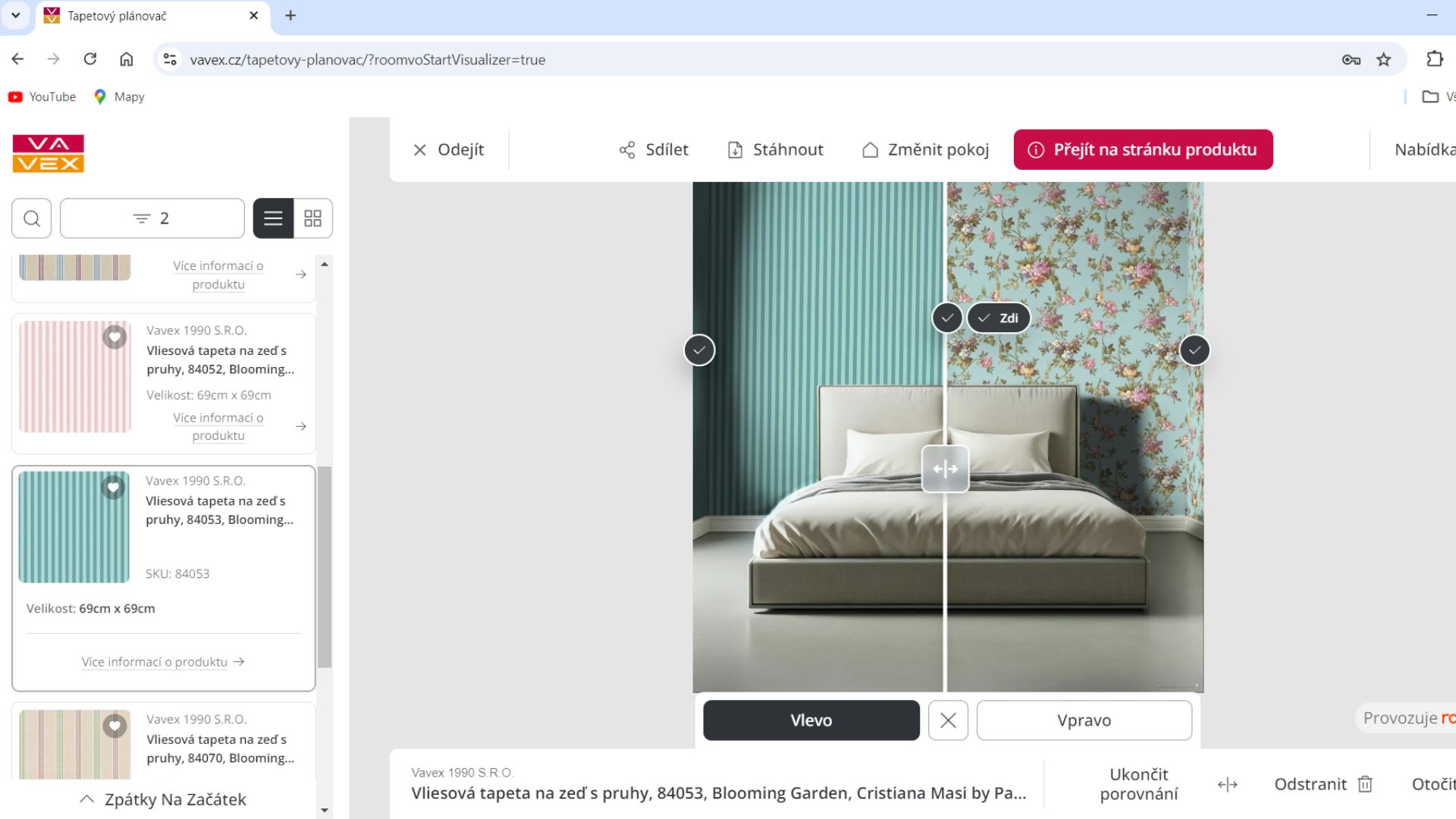 Jetzt kommt der spannende Teil – die Auswahl der Tapete! Die Raumvisualisierung bietet Ihnen eine große Auswahl an Mustern und Farben, von sanften Pastelltönen bis hin zu kräftigen geometrischen Designs. Durchstöbern Sie die verschiedenen Optionen und sehen Sie, wie sich Ihr Schlafzimmer verändert.
