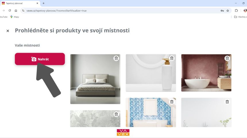 Der erste Schritt? Laden Sie ein Foto Ihres Schlafzimmers in die Raumvisualisierung hoch. Ja, es ist wirklich so einfach – mit nur einem Klick sehen Sie, wie Ihr Schlafzimmer mit verschiedenen Tapeten aussieht, ohne ein einziges Möbelstück bewegen zu müssen. Laden Sie einfach das Foto hoch und beginnen Sie mit dem Ausprobieren!