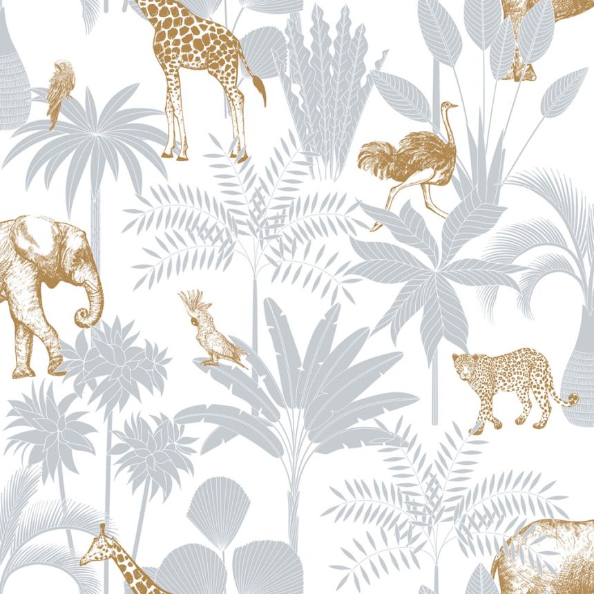 Weiße Tapete mit Leoparden und Blättern, 118733, Envy Weiße Tapete mit Leoparden und Blättern, 118733, Envy