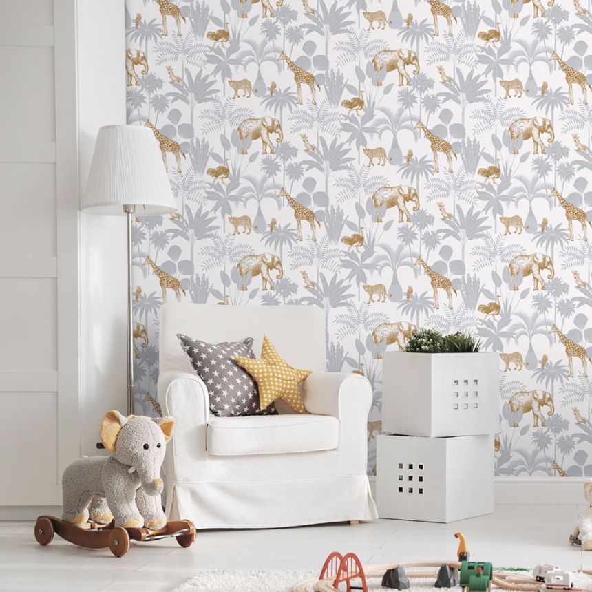 Kindertapete mit Palmen und Tieren, 976-2, Mika,  ICH Wallcoverings Kindertapete mit Palmen und Tieren, 976-2, Mika,  ICH Wallcoverings