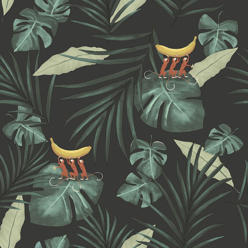 Schwarze Tapete mit Leoparden und Blättern, 118610, Envy Schwarze Tapete mit Leoparden und Blättern, 118610, Envy