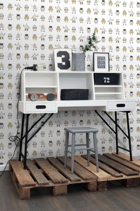 Tapeten mit grafischen Gesichtern für moderne Innenräume, aber auch mit Figuren von Robotern, Ballerinas, Piraten für Kinderzimmer. Diese unkonventionellen Tapeten bringen einen originellen Touch an Ihre Wände.