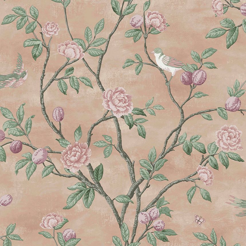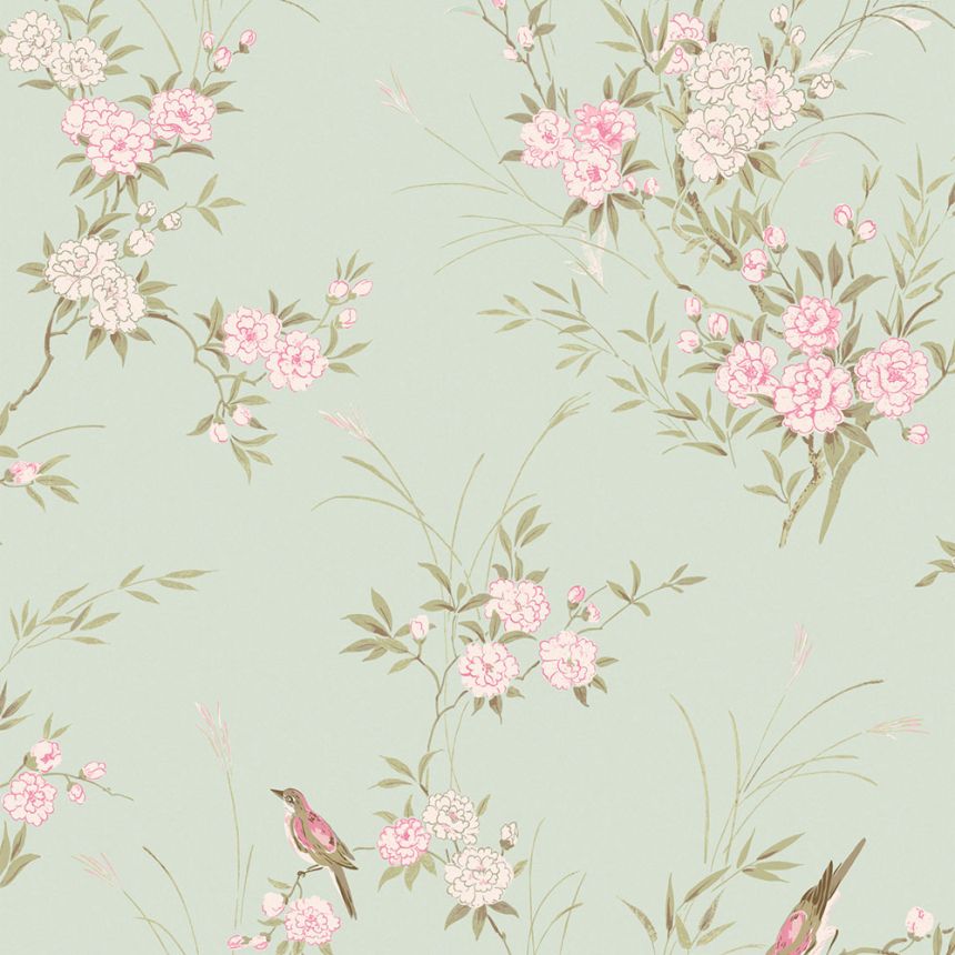 Tapete mit rosa Blumen und Vögeln 113392, Laura Ashley, Graham & Brown Tapete mit rosa Blumen und Vögeln 113392, Laura Ashley, Graham & Brown
