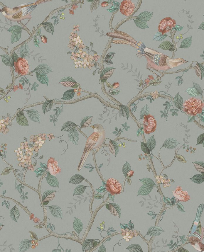 Graugrüne Tapete mit Zweigen und Vögeln, 333121  Pip Studio 6, Eijffinger Graugrüne Tapete mit Zweigen und Vögeln, 333121  Pip Studio 6, Eijffinger