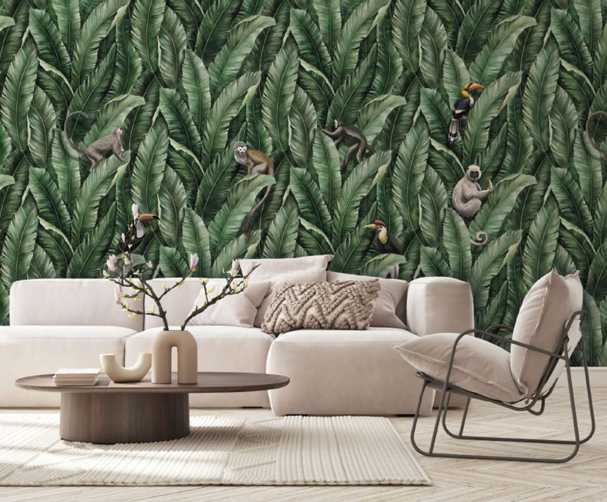 Exotische Fototapeten mit einem Dschungelmotiv machen Ihr Zuhause zu einem Ort der Entspannung. Grüne Dschungelmotive kommen nicht nur im Wohnzimmer gut zur Geltung, sondern auch bei der Einrichtung von Konferenzräumen, Empfängen und Hallen.
