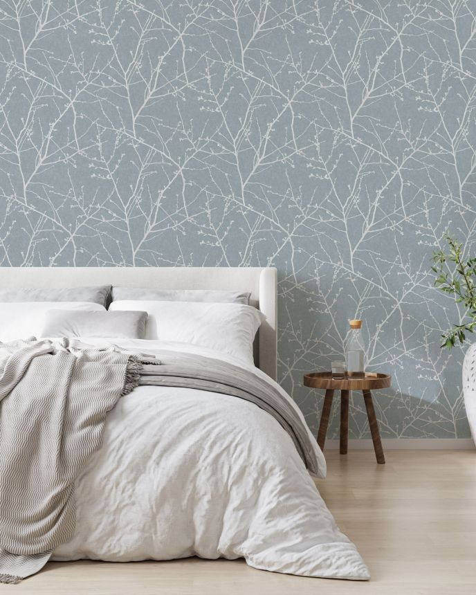 Blau-bronzefarbene Vliestapete mit Zweigen, A71404, Vavex 2026 Blau-bronzefarbene Vliestapete mit Zweigen, A71404, Vavex 2026