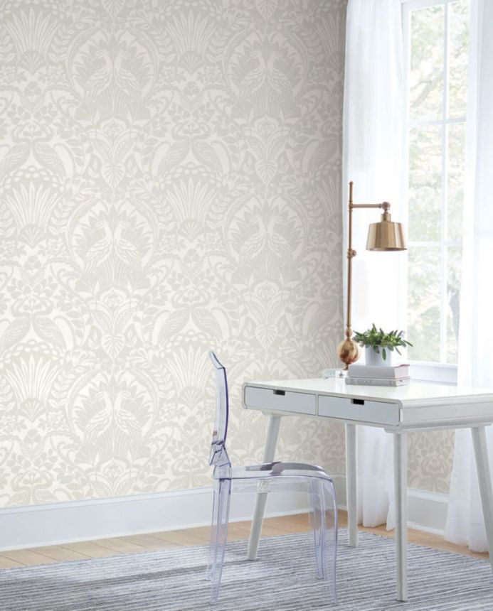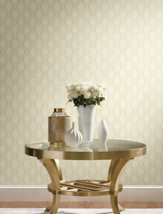 Beige-weiße, vorgeklebte Tapete mit Ornamenten DM5032, Damask, York Beige-weiße, vorgeklebte Tapete mit Ornamenten DM5032, Damask, York