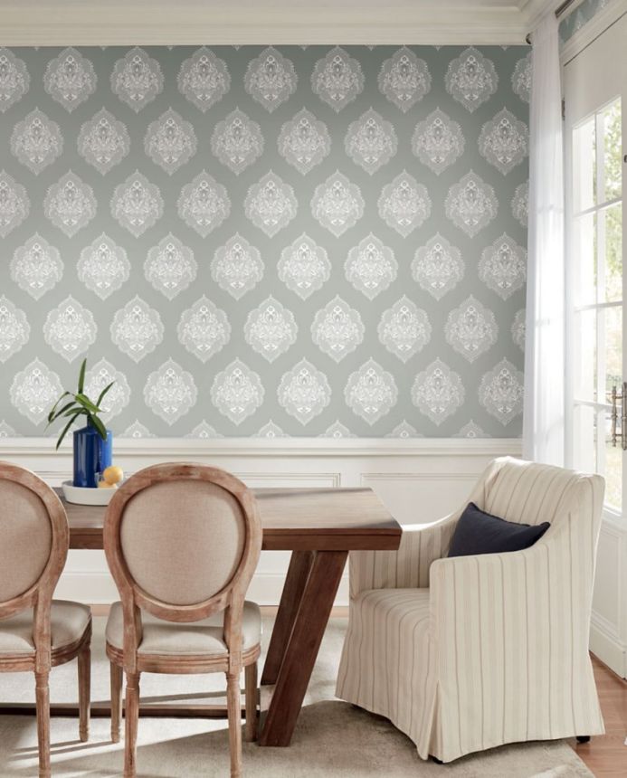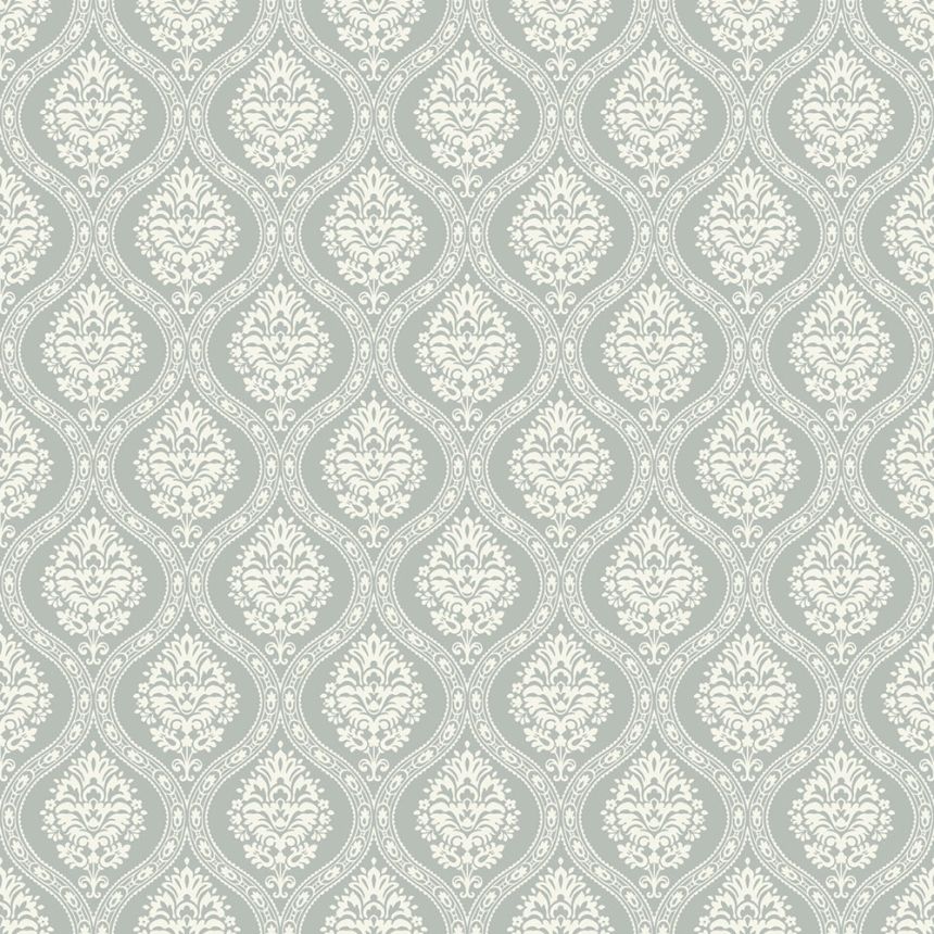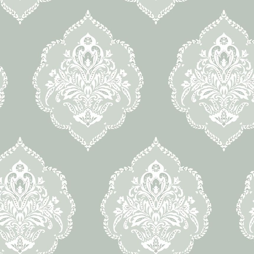 Grau-grüne vorgeklebte Tapete, weißes Damastmuster DM5028, Damask, York Grau-grüne vorgeklebte Tapete, weißes Damastmuster DM5028, Damask, York