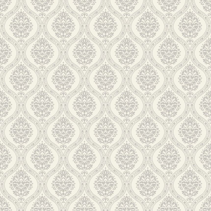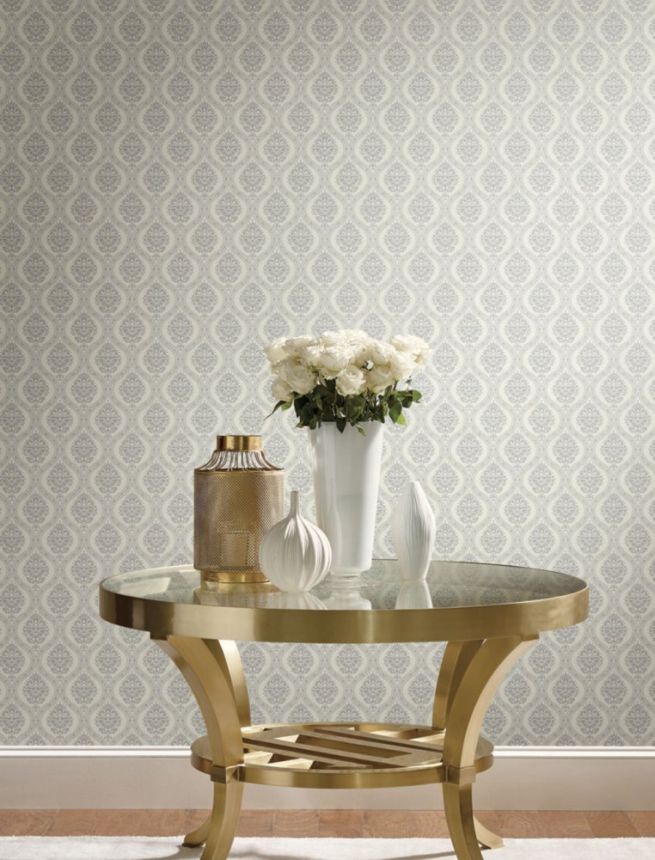 Grau-weiße vorgeklebte Barocktapete DM5036, Damask, York Grau-weiße vorgeklebte Barocktapete DM5036, Damask, York