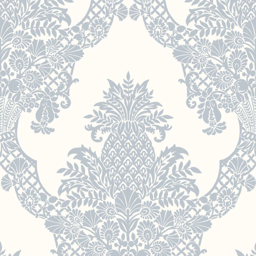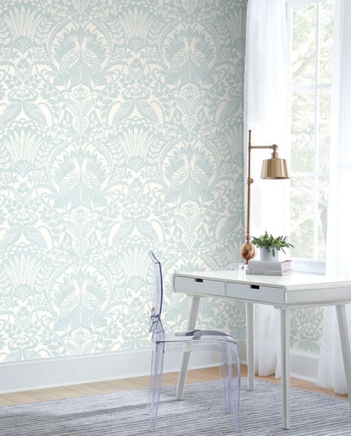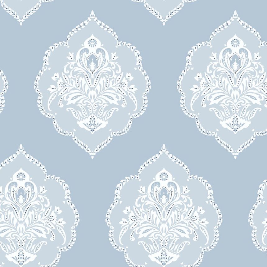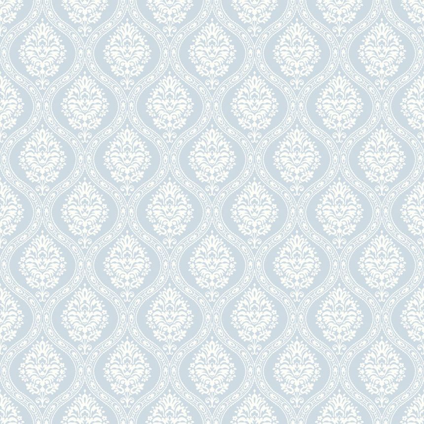 Hellblaue, vorgeklebte Tapete mit Ornamenten DM5033, Damask, York Hellblaue, vorgeklebte Tapete mit Ornamenten DM5033, Damask, York
