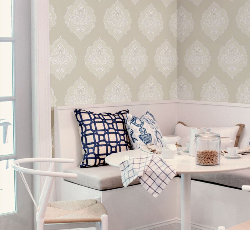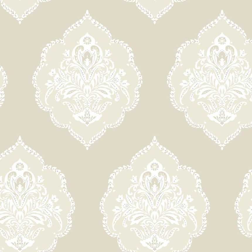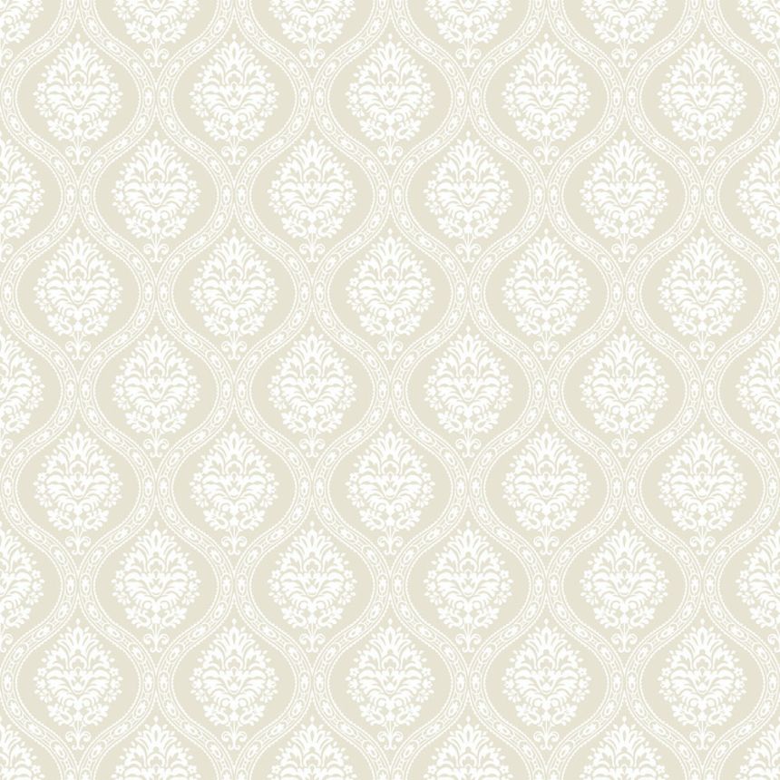 Beige vorgeklebte Tapete, weißes Damastmuster DM5025, Damask, York Beige vorgeklebte Tapete, weißes Damastmuster DM5025, Damask, York