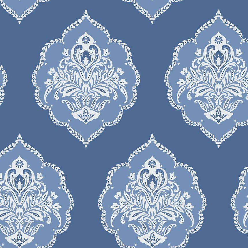 Blaue vorgeklebte Barocktapete DM5037, Damask, York Blaue vorgeklebte Barocktapete DM5037, Damask, York