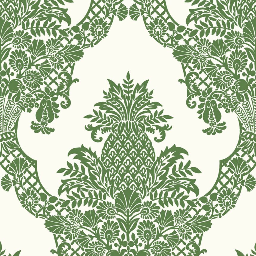 Grüne Papiertapete - Ornamente, Palmen DM5011, Damask, York Grüne Papiertapete - Ornamente, Palmen DM5011, Damask, York