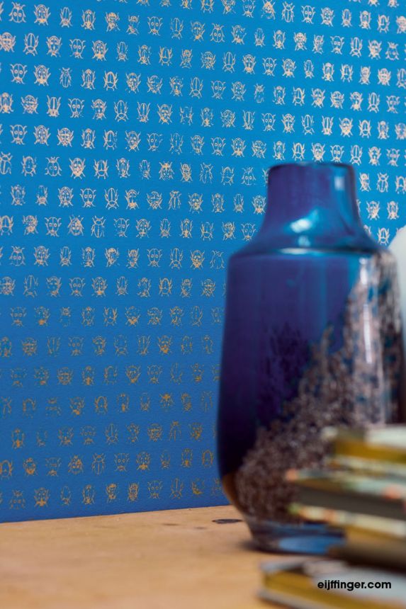 Blaugoldene Tapete mit geometrischen Mustern, BA26092, Brazil, Decoprint Blaugoldene Tapete mit geometrischen Mustern, BA26092, Brazil, Decoprint