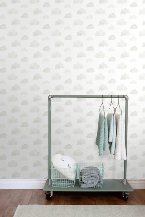 Vliestapete weiß mit grauen Wolken 138945, Little Bandits, Esta Vliestapete weiß mit grauen Wolken 138945, Little Bandits, Esta