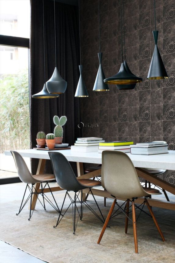 Tapete in schwarzbrauner Holzoptik mit Jahresringen, 347550, Matières - Wood, Origin Tapete in schwarzbrauner Holzoptik mit Jahresringen, 347550, Matières - Wood, Origin
