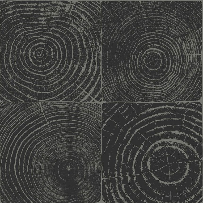 Tapete in schwarz-silberner Holzoptik mit Jahresringen, 347544, Matières - Wood, Origin Tapete in schwarz-silberner Holzoptik mit Jahresringen, 347544, Matières - Wood, Origin