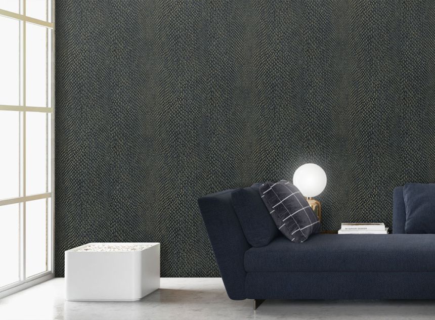 Vliestapete, blau-gold, Schlangenhaut-Imitat, NHW1038, Perla, Decoprint Vliestapete, blau-gold, Schlangenhaut-Imitat, NHW1038, Perla, Decoprint