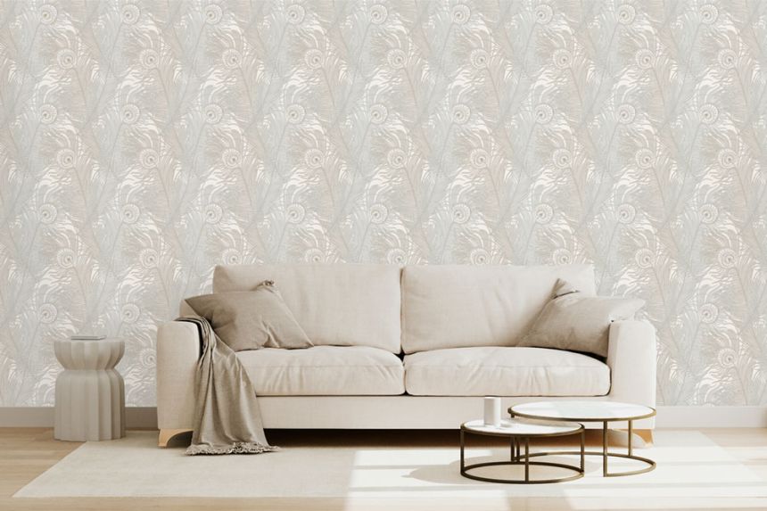 Vliestapete, creme, Pfauenfedern, NHW1044, Perla, Decoprint Vliestapete, creme, Pfauenfedern, NHW1044, Perla, Decoprint
