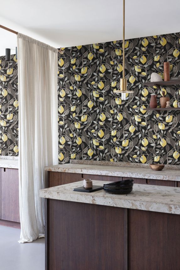 Schwarze Vliestapete mit Zitronenbaum,  ILA101, Aquila, Khroma by Masureel Schwarze Vliestapete mit Zitronenbaum,  ILA101, Aquila, Khroma by Masureel