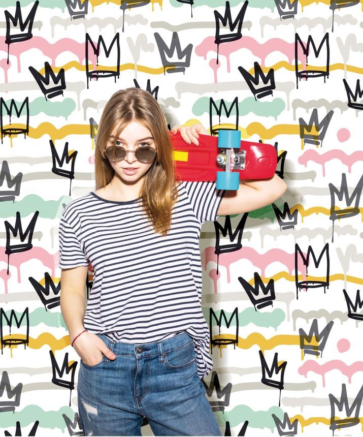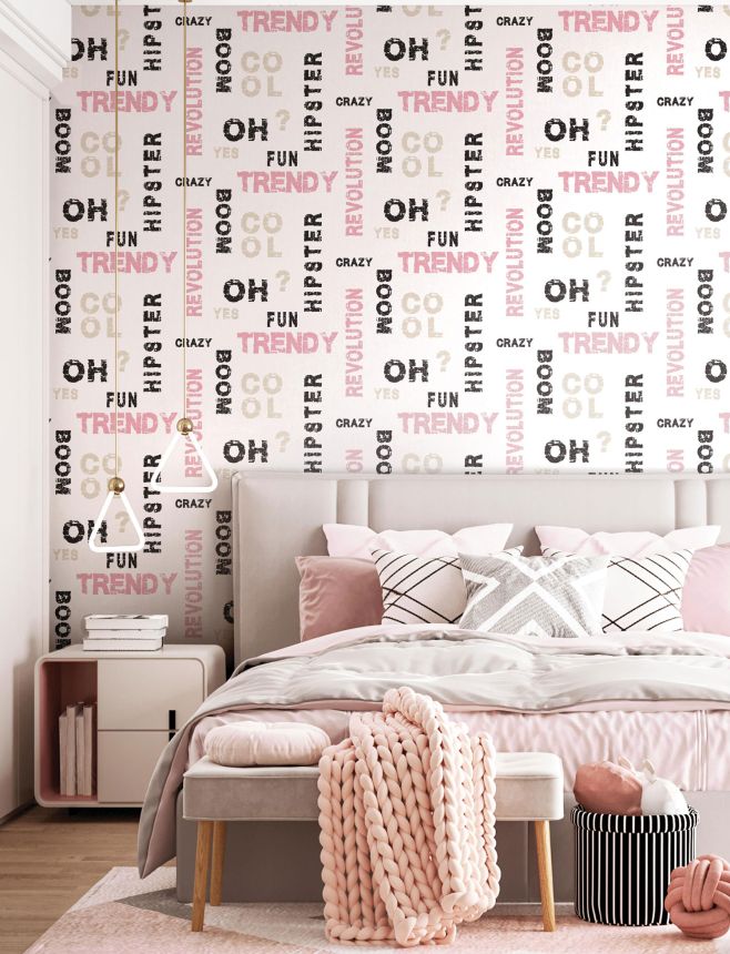 Cremefarbene Vliestapete mit Buchstaben, 16631, Friends & Coffee, Cristiana Masi by Parato Cremefarbene Vliestapete mit Buchstaben, 16631, Friends & Coffee, Cristiana Masi by Parato