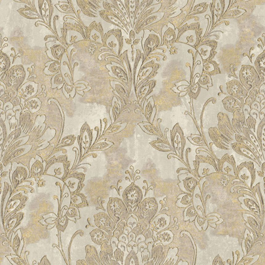 Graubraune Tapete, Blätter, Textilstruktur TA25062 Tahiti, Decoprint