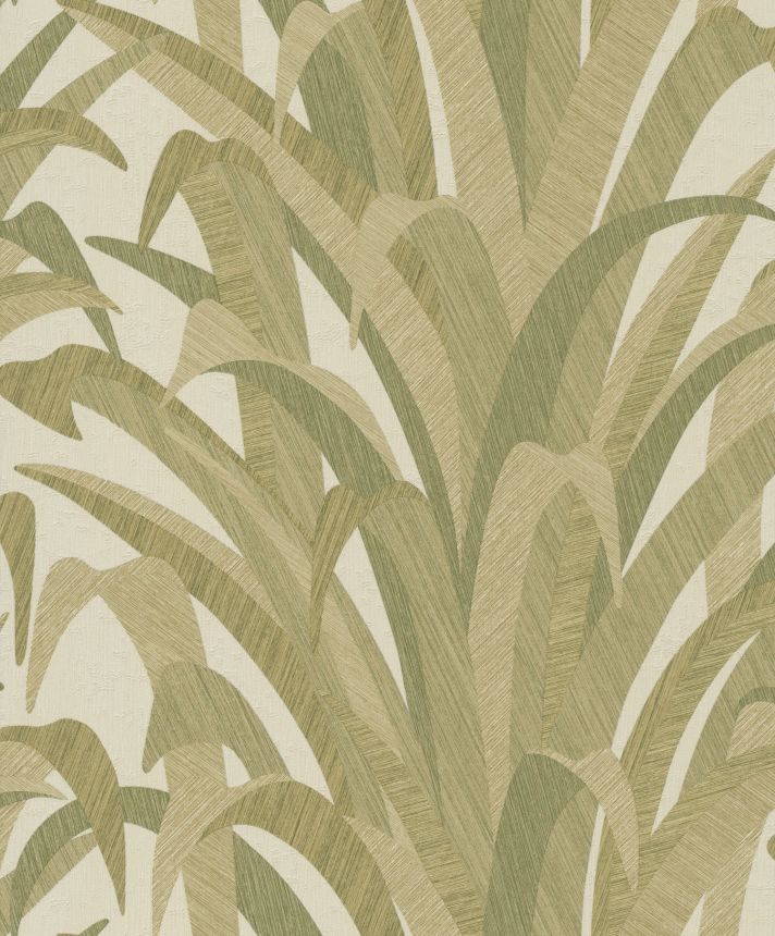 Grüne und cremefarbene Tapete mit Blättern, CU3203, Cumaru, Grandeco Grüne und cremefarbene Tapete mit Blättern, CU3203, Cumaru, Grandeco