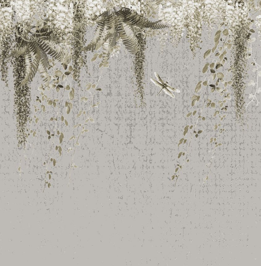 Graue Tapete, Blätter, TI2003, Time 2025, Grandeco Graue Tapete, Blätter, TI2003, Time 2025, Grandeco