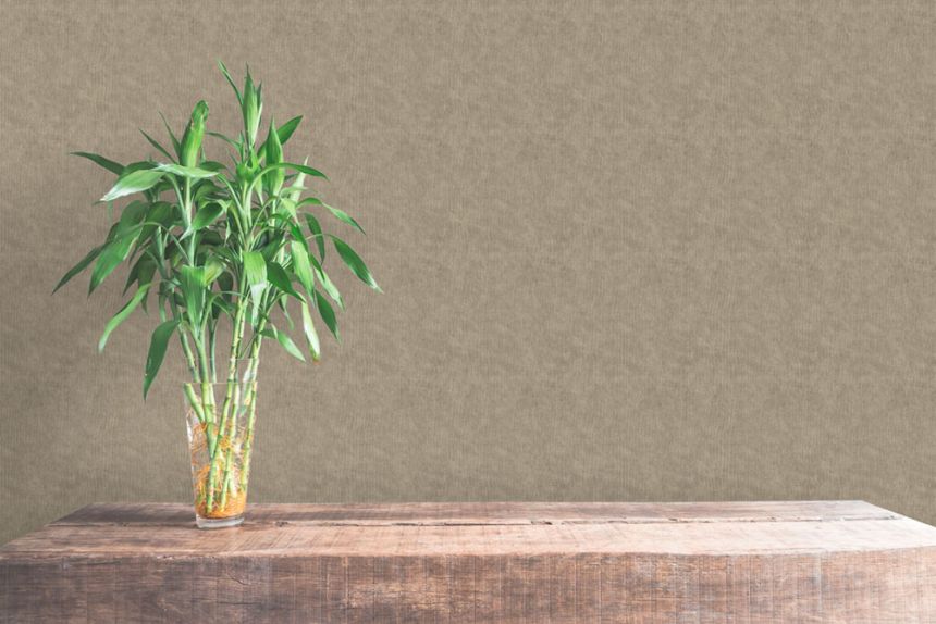 Beigefarbene Vliestapete mit Bambusblättern, RE25192, Reflect, Decoprint Beigefarbene Vliestapete mit Bambusblättern, RE25192, Reflect, Decoprint