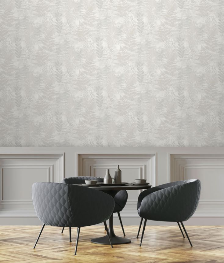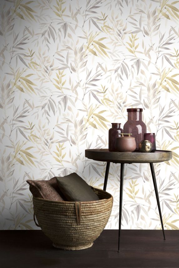Grau-beige Vliestapete mit Blättern, RE25150, Reflect, Decoprint Grau-beige Vliestapete mit Blättern, RE25150, Reflect, Decoprint