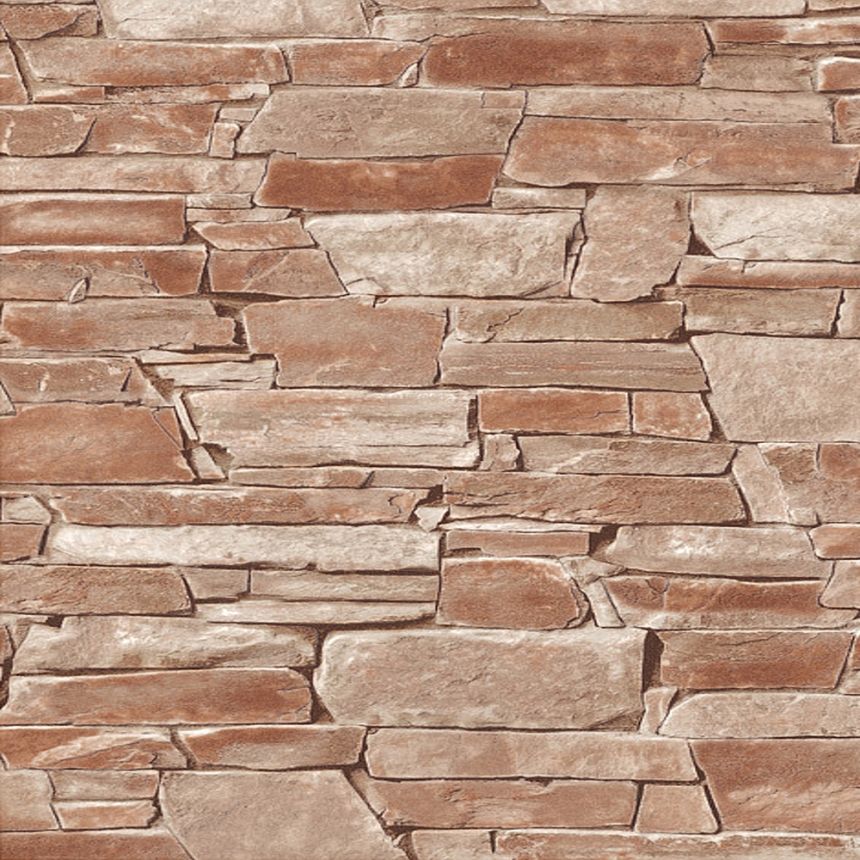 Tapete mit einem Muster aus strukturierten Steinwänden in Brauntönen.