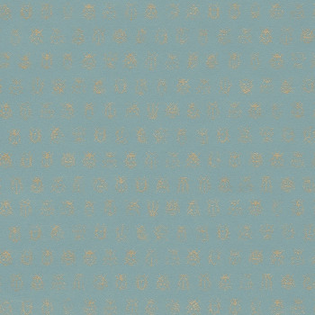 Regelmäßiges Muster mit goldenen Käfern auf türkisfarbener Vliestapete.