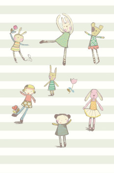 Tierische Ballerinas auf grau-weiß gestreiftem Hintergrund - fröhliche Fototapete für die Kleinsten.