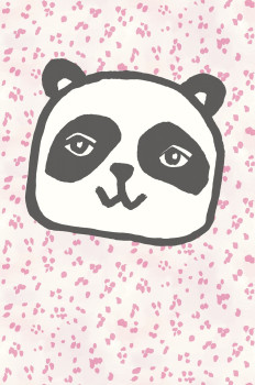 Pandakopf auf einem Hintergrund mit einem rosa Muster.