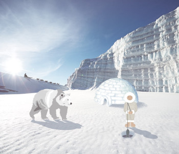 Eskimo, Iglus, Eisbär, Gletscher im Hintergrund. Tapete Wandbilder für kleine Abenteurer.