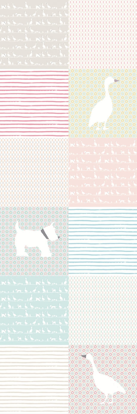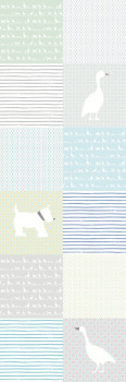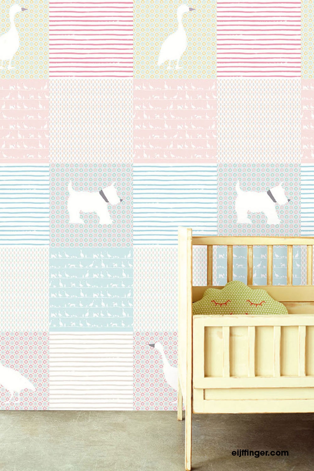 Tiere und geometrische Muster in Pastellfarben auf Tapete Wandbilder. Diese Tapete ist für das Interieur der kleinsten Kinder geeignet.