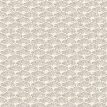Cremefarbene Vliestapete mit einem Motiv aus Muscheln mit silbernen Details.