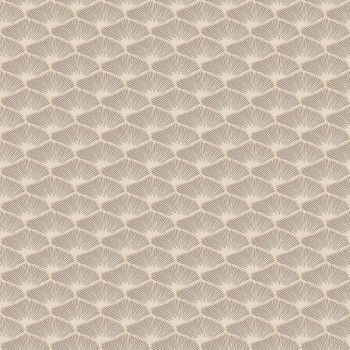 Vliestapete mit Muschelmotiv in Beigetönen mit goldenen Details.