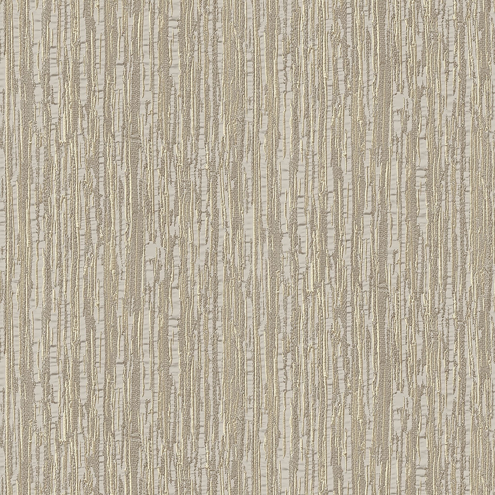 Luxuriöse Vliestapete mit Vinyloberfläche - Seidenstoffdesign mit feinem Halbglanz mit metallisch geprägten Texturen in Graubeige- und Goldtönen. Die Farben und Highlights auf der Tapete verändern sich je nach Lichteinfall.