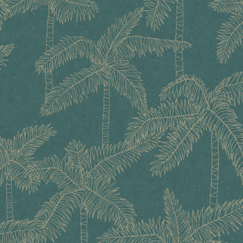 Zelená vliesová tapeta se zlatými palmami 384513, Vivid, Eijffinger