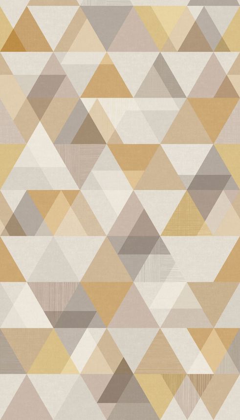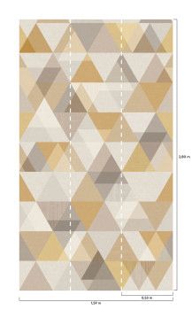 Deutliches geometrisches Muster in den Farbtönen Ocker, Graugrün und Braunbeige. Vlies. Die Tapete hat ein durchgehendes Muster, für eine größere Breite müssen Sie einfach ein weiteres Stück kaufen.