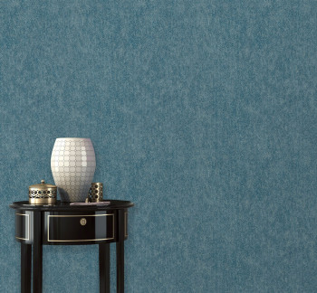 Fein strukturierte Tapete in dunklen Blau-Grau-Tönen mit kleinem unregelmäßigen Muster, dezenten Silberreflexen. Abwaschbare Tapete, Vliesrückseite, Vinyloberfläche.