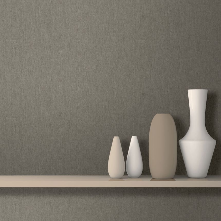 Elegante abwaschbare Tapete mit feiner Struktur in dunklen Brauntönen, mit einem silbrigen Glanz, der sich je nach Lichteinfall verändert.