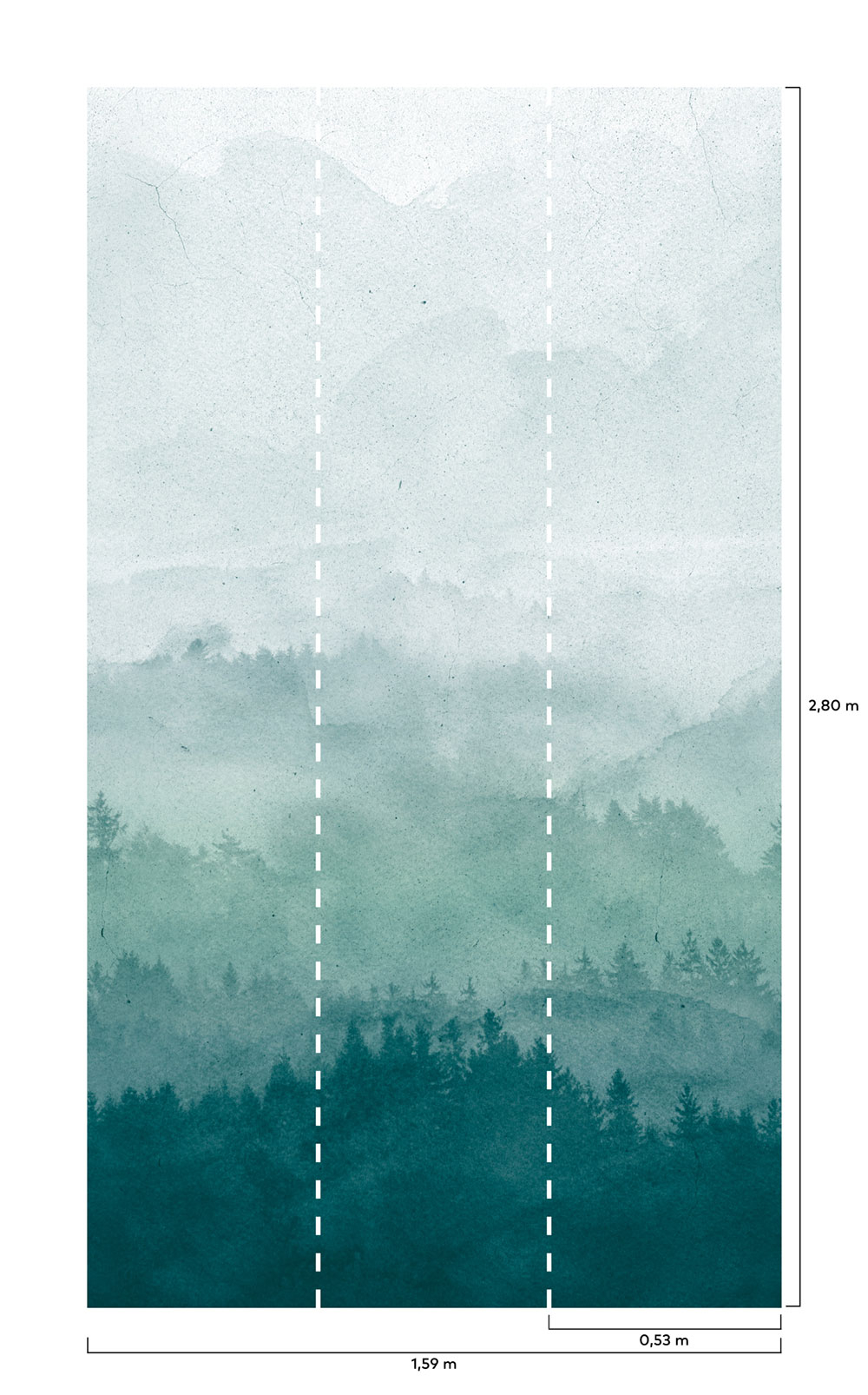 Landscape - Waldtal. Die Tapete hat ein durchgehendes Muster, für eine größere Breite müssen Sie einfach ein weiteres Stück kaufen.