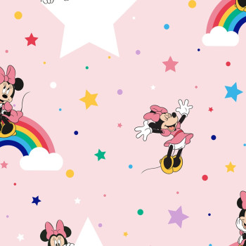 Lieblings-Disney-Figur Minnie Mouse. Diesmal zwischen Sternen und Regenbogen... Papiertapete kombinierbar mit verwandten Mustern.