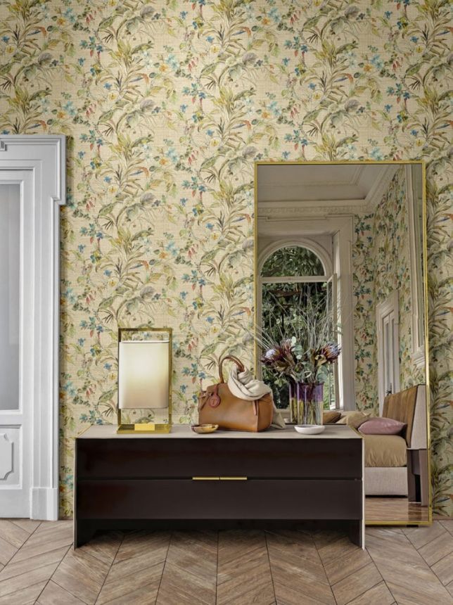 Luxury non-woven wallpaper with a vinyl surface Z21831, Flowers, orchids, leaves, Trussardi 5, Zambaiti Parati