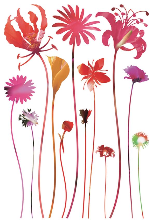 Selbstklebende Wanddekoration 42,5 x 65 cm, Rote Blumen. Ändern Sie schnell und einfach das Aussehen Ihres Interieurs! Wir empfehlen, auf einer glatten Oberfläche zu kleben.