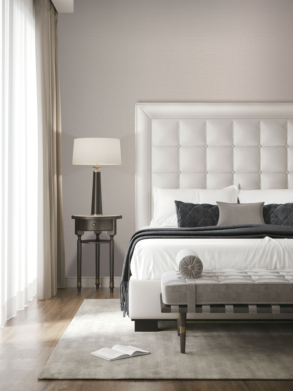 Luxuriöse Vliestapete mit Vinyloberfläche, eine originalgetreue Imitation eines feinen cremefarbenen Stoffes.
